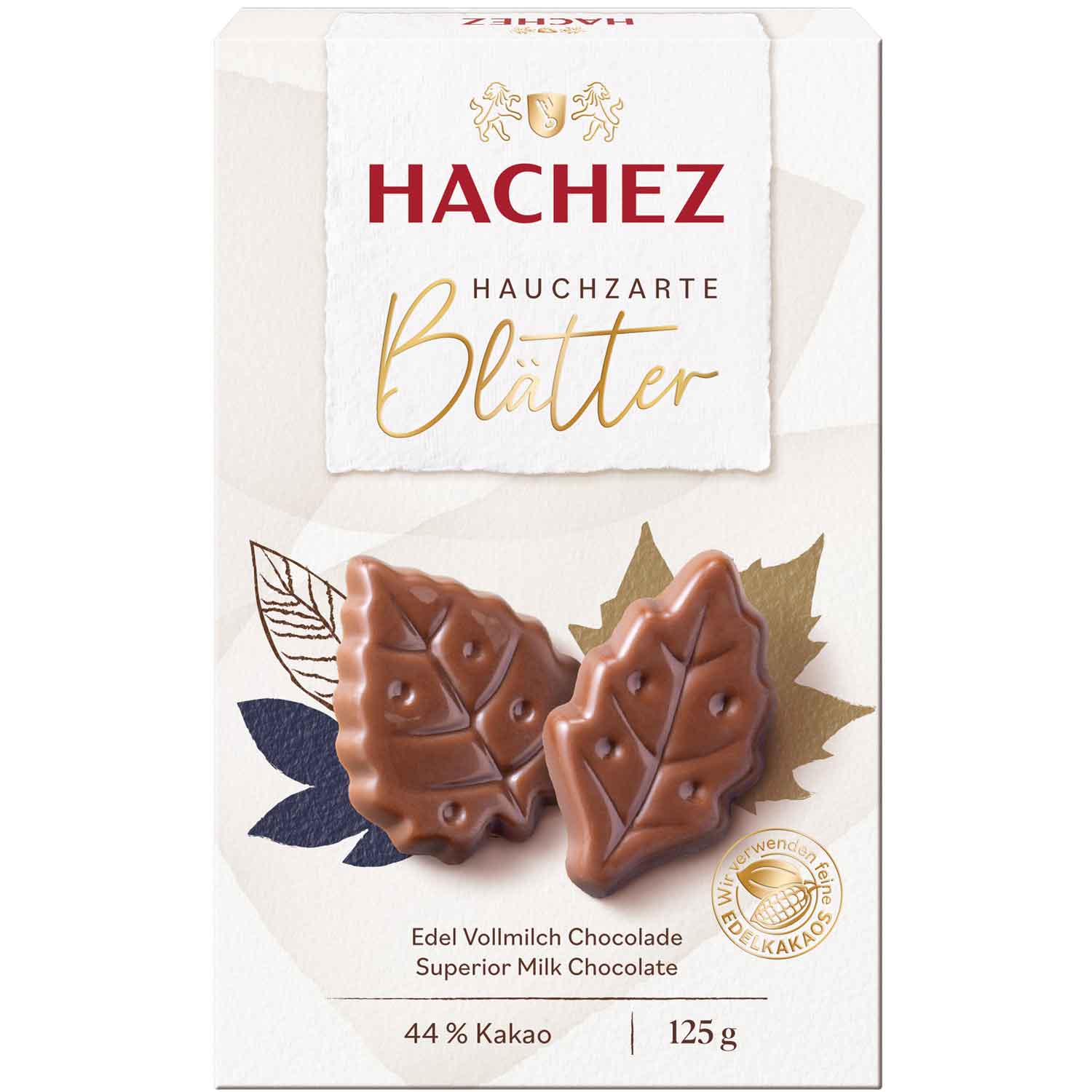 Liść po liściu to prawdziwa przyjemność Hachez. Delikatne liście z mlecznej czekolady są prawdziwą ucztą dla oczu i podniebienia. Te szczegółowo zaprojektowane czekoladowe tabliczki z mlecznej czekolady są wzorowane na różnych liściach i rozpuszczają się w ustach wraz z kremowym smakiem czekolady, który został wzbogacony wykwintną wanilią bourbon. Te piękne liście są idealne jako dekoracja na ciastach lub deserach, jako elegancki prezent lub do własnej konsumpcji. Projekt produktu może różnić się od przedstawionego na zdjęciu.