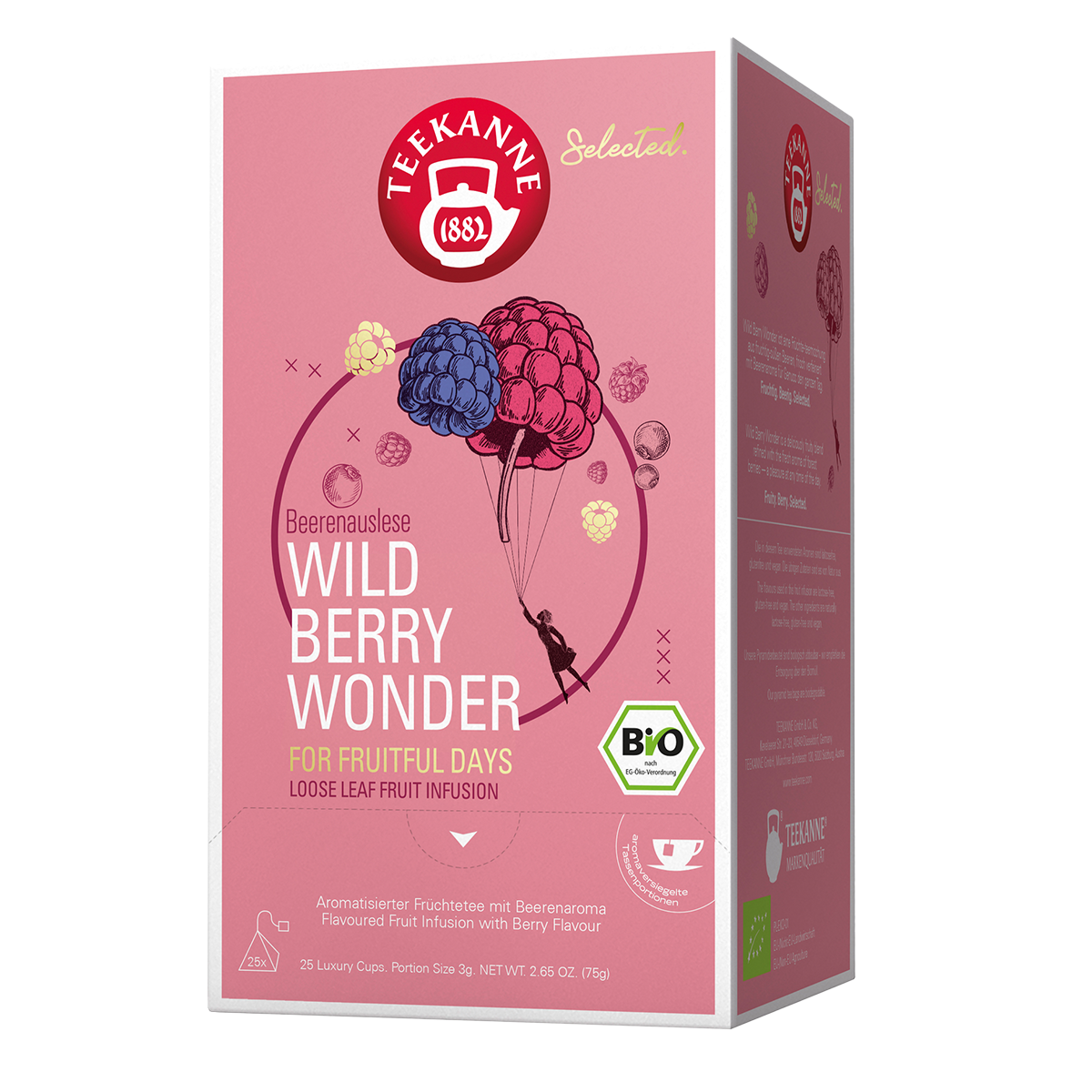 Teekanne Selected Bio Wild Berry Wonder, dostępny w opakowaniu z 25 luksusowymi kubkami, to urocza mieszanka herbaty owocowej, która będzie towarzyszyć Ci przez cały dzień. Ta mieszanka łączy w sobie owocowe i słodkie jagody, tworząc prawdziwe doznanie smakowe. Z dodatkiem świeżego aromatu jagód, Wild Berry Wonder oferuje harmonijną mieszankę różnych owoców. Ta herbata owocowa to wyselekcjonowana kompozycja, która zabierze Cię w owocowo-jagodowy świat za każdym łykiem. Teekanne Selected Bio Wild Berry Wonder – wybór, który obiecuje owocowe chwile rozkoszy.