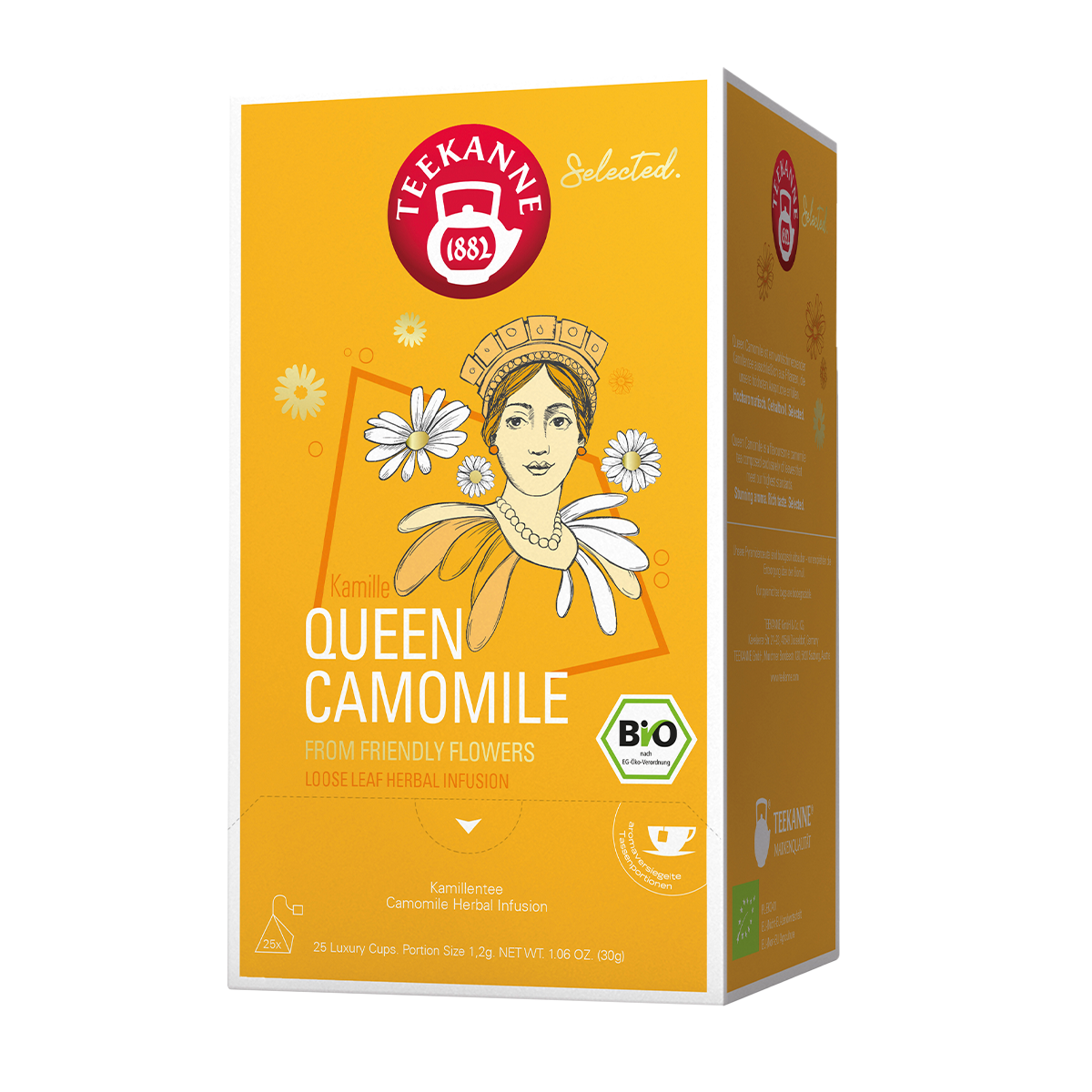 Teekanne Selected Bio Queen Camomile jest dostarczana w opakowaniu zawierającym 25 luksusowych kubków i jest wyśmienitą herbatą rumiankową, która jest wytwarzana wyłącznie z najwyższej jakości starannie wybranych roślin. Ta herbata rumiankowa, nosząca nazwę „Queen Camomile”, spełnia nasze najbardziej wymagające standardy. Oferuje ona unikalne doznanie smakowe dzięki bogatemu i intensywnie aromatycznemu profilowi smakowemu. Każdy łyk tej herbaty rumiankowej, w 100% wyprodukowanej z roślin organicznych, jest zaproszeniem do cieszenia się relaksującym i kojącym działaniem rumianku.
