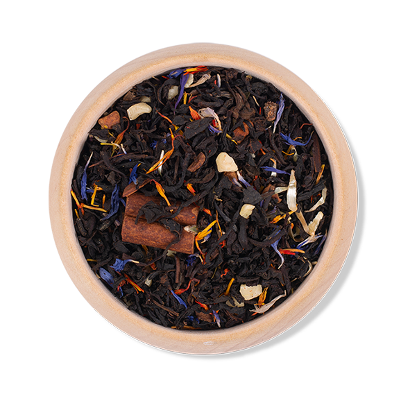 Czarna herbata, cynamon, migdały, goździki, kwiaty chabru i safloru, aromat. Może zawierać śladowe ilości innych orzechów i arachidów.
