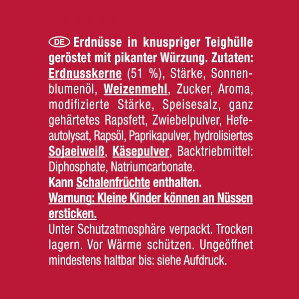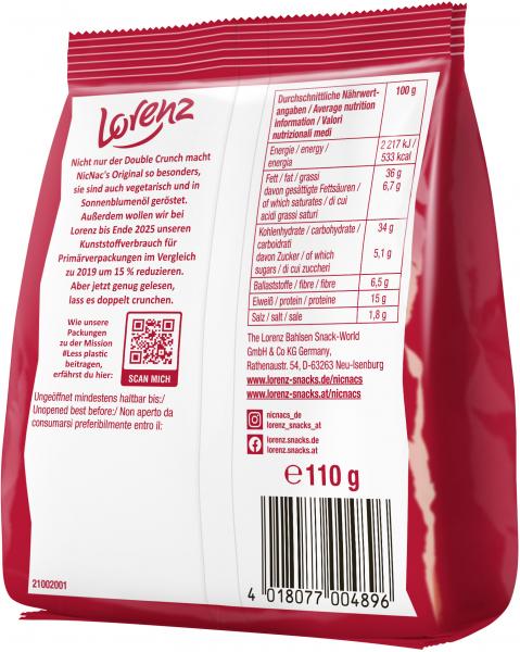 NicNac’s to chrupiące orzeszki ziemne otoczone pikantną skorupką. Dzięki doskonałemu połączeniu prażonych orzeszków ziemnych i kruchej skorupki powstaje wyjątkowa przekąska orzechowa z efektem podwójnego chrupania. Starannie wyselekcjonowane orzeszki ziemne otoczone kruchą skorupką, prażone w oleju słonecznikowym i ulepszone unikalnym przyprawieniem NicNac’s Original. Prawdziwy klasyk!