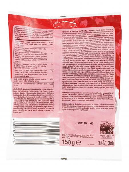 Mieszanka trzech odmian truskawek, wiśni i malin została uzupełniona o kremowy, świeży smak jogurtu. Tylko naturalne aromaty i barwniki zapewniają intensywny smak owoców i czerwone odcienie. Mini-krążki z czerwonymi owocami mają idealny rozmiar do przekąszenia.