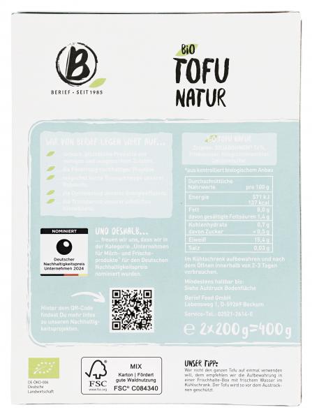 Organiczne tofu naturalne Berief Bio Tofu Natur 2x200g