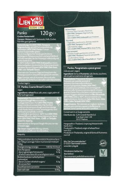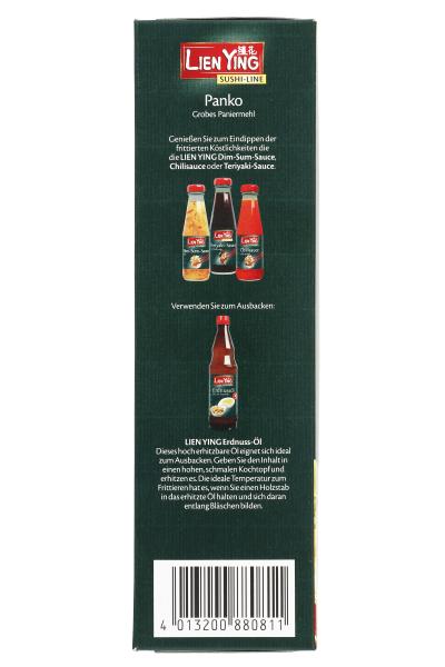 - Lien Ying Panko pochodzi z kuchni japońskiej i jest wykonany z białego chleba bez skórki. Dzięki temu, że jest smażony, ma on wyjątkowo chrupiącą skórkę, która pozostaje puszysta i lekka nawet po wystygnięciu. Idealny na finger food! Szczególnie popularny do smażenia warzyw, grzybów, krewetek, ryb lub kawałków mięsa.