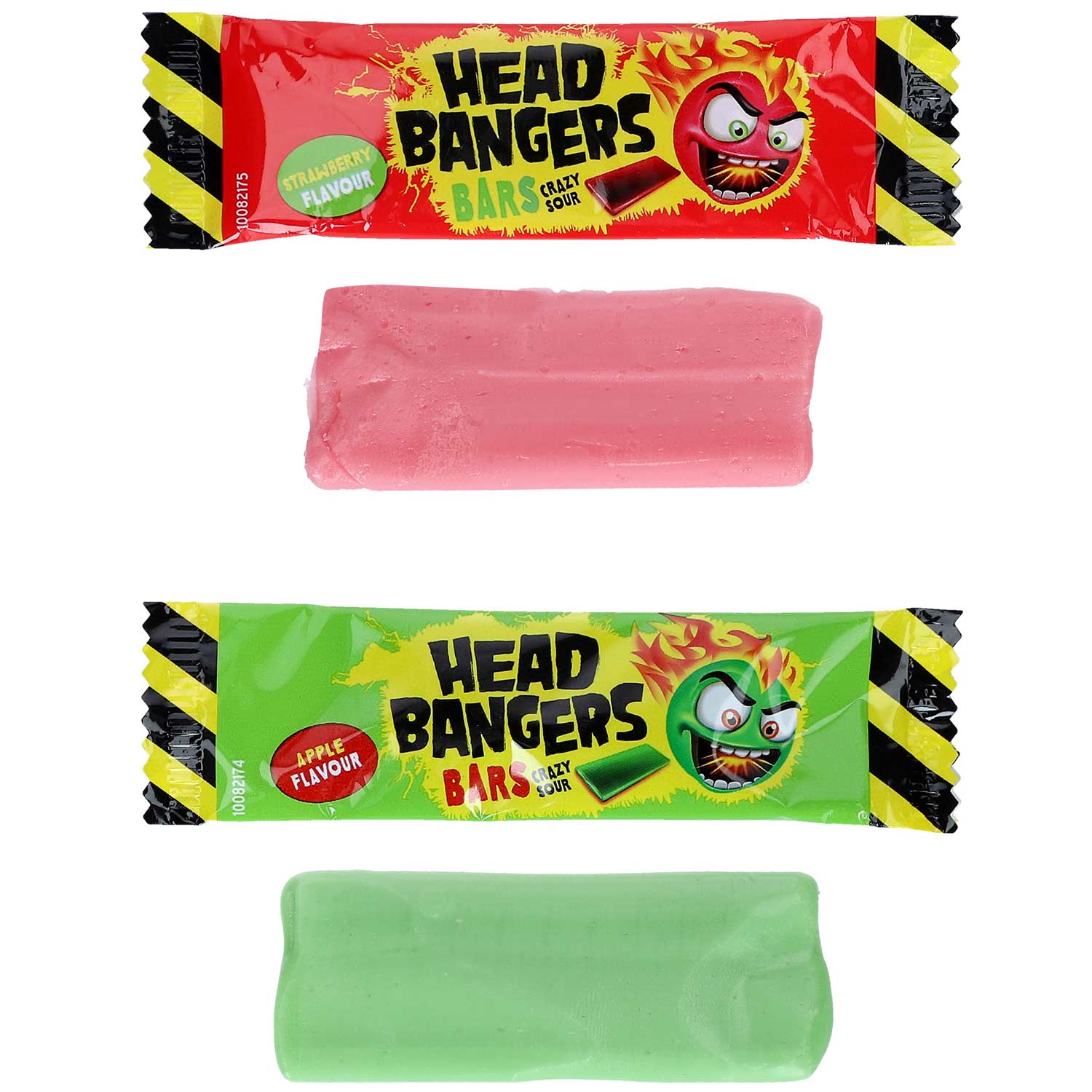 To super-kwaśne duo! Smaczne batoniki Head Bangers Bars Crazy Sour Jabłko & Truskawka dostarczą Ci ekscytującej bitwy smakowej w dwóch owocowych wersjach. Twarde paski żelkowe imponują smakiem jabłka i truskawki, a ich intensywnie kwaśne nuty zapewniają strasznie piękny moment łakomstwa. Projekt produktu może różnić się od przedstawionego na obrazku.
