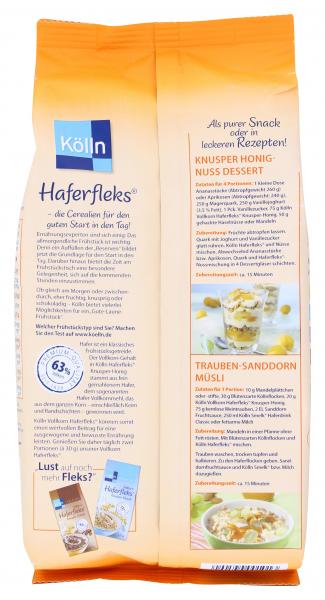 Słodki smak pełnoziarnistych płatków owsianych. Wysoka zawartość pełnego ziarna owsa z delikatną nutą miodu i cukru gronowego sprawia, że Kölln Vollkorn Haferfleks® Knusper-Honig jest pysznym śniadaniowym przysmakiem.