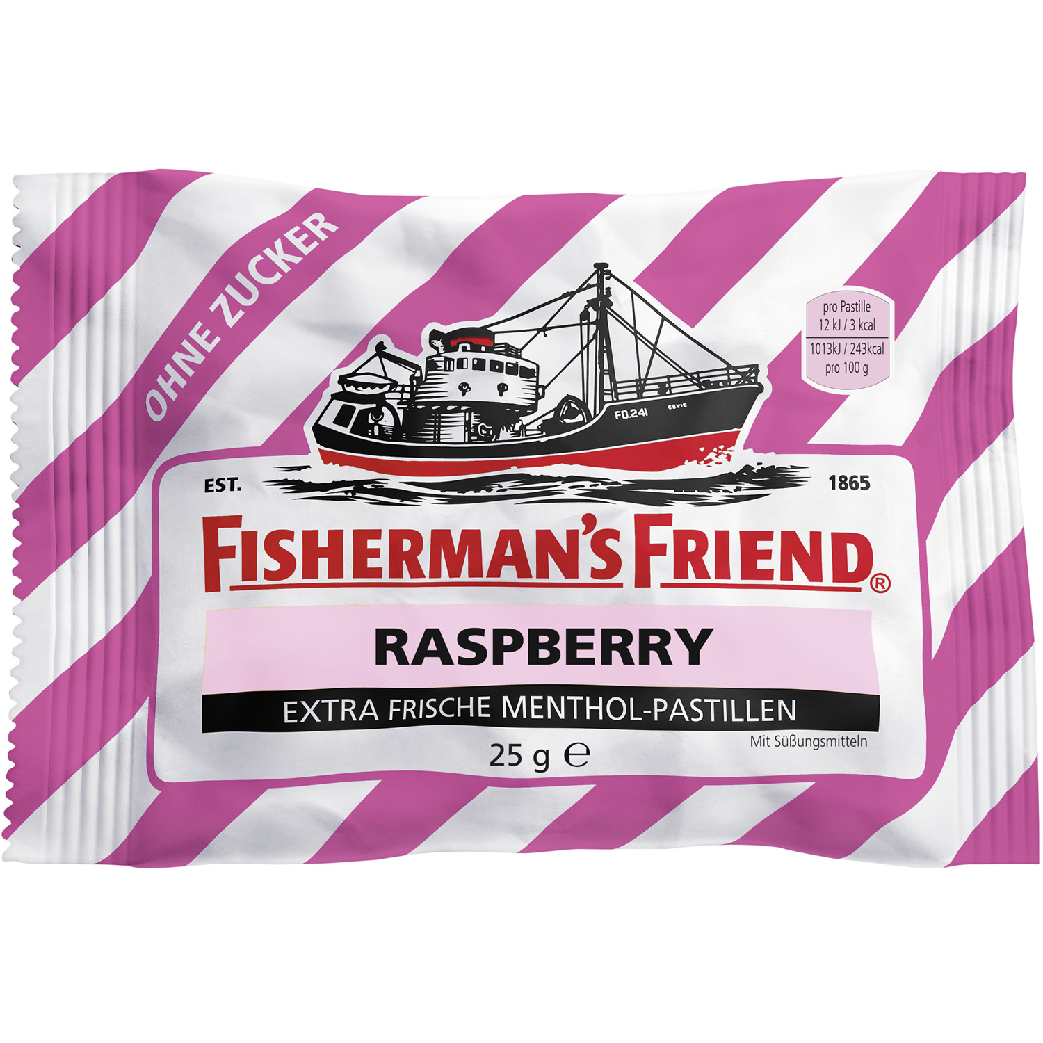 Hmmbeere! Fisherman’s Friend Maliny bez cukru to ekstra świeże pastylki mentolowe o wyjątkowym owocowym aromacie. Intensywny smak malin jest tu połączony z charakterystyczną dla Fisherman’s Friend świeżością – całkowicie bez cukru. Projekt produktu może różnić się od przedstawionego na zdjęciu.